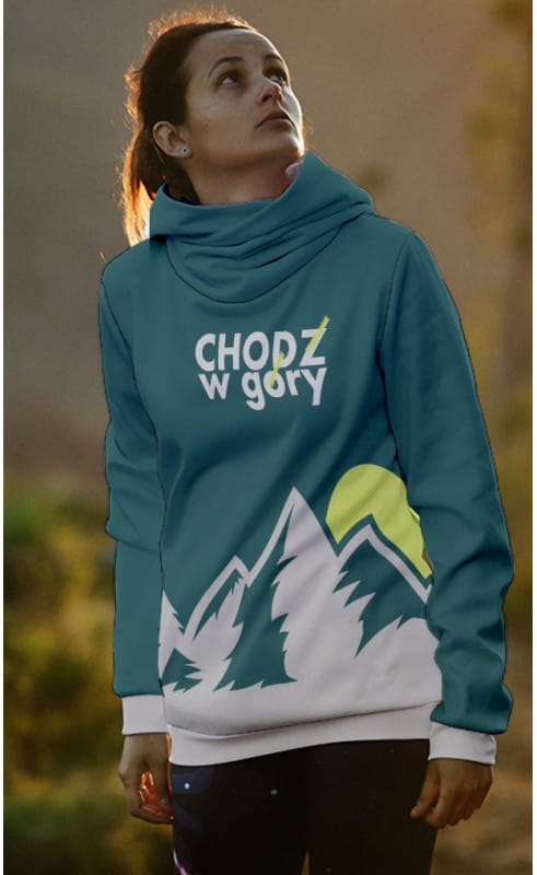 Bluza sportowa z nadrukiem w góry, z wygodnego, ciepłego i zapewniającego komfort cieplny materiału o właściwościach hydrofobowych (nie nasiąka wodą pozwalając jej swobodnie spływać po powierzchni bluzy).