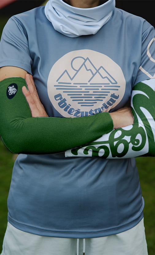 Rękawki są w całości zadrukowane i od początku do końca uszyte w Polsce. Konkretnie - na Śląsku. Konkretnie w Zabrzu. Na Sienkiewicza 13… tak już całkiem konkretnie. Szyta rękami naprawdę doświadczonej krawcowej. W spokoju, w skupieniu, przy kawie. Bez drapiących metek. Bez drapiących elementów i ostrych szwów. Sprawdzone podczas wielu biegów przeszkodowych i maratonów stanowią doskonałe uzupełnienie termiczne, które można łatwo podczas biegu ściągnąć i schować do niewielkiej kieszonki.