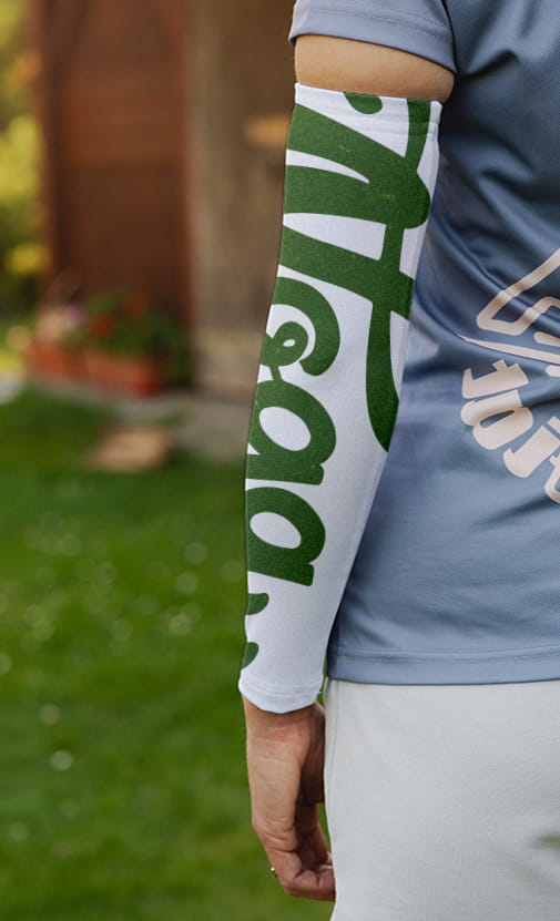 Rękawki sportowe wykonane z elastycznego materiału. Od strony bicepsa gumka z silikonowym paskiem - zabezpiecza przed zsuwaniem.